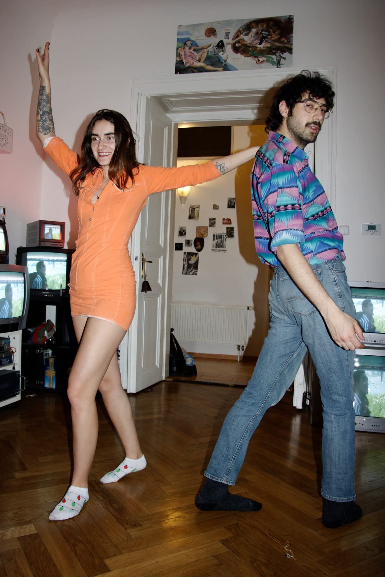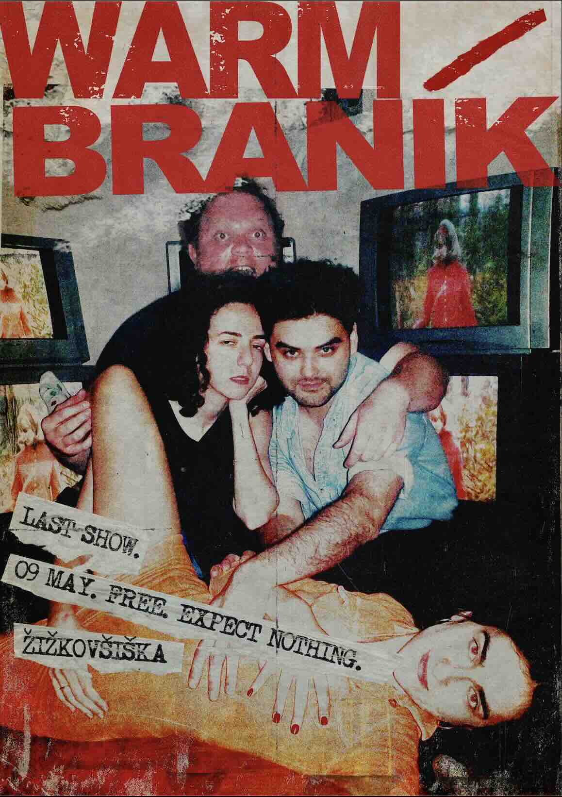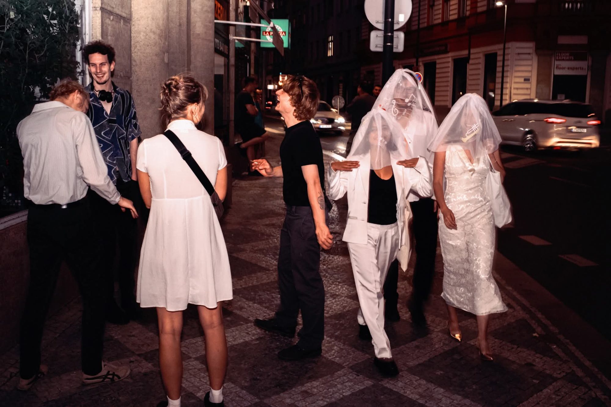 At the end of the month, Tyko and Sandra celebrated their second wedding—this time in Žižkov, where attendees came dressed in their best wedding dresses. The event started with performances by long-time O:P friends (China Soup, Alpha Strategy) and ended with a final performance by Tyko and Sandra’s no-wave project: David’s Sister. The night was officiated by Jaromír Lelek, who stood shirtless in ceremony surrounded by stacks of TVs playing analogue mixes that stated: “Tonight, we all get married.”