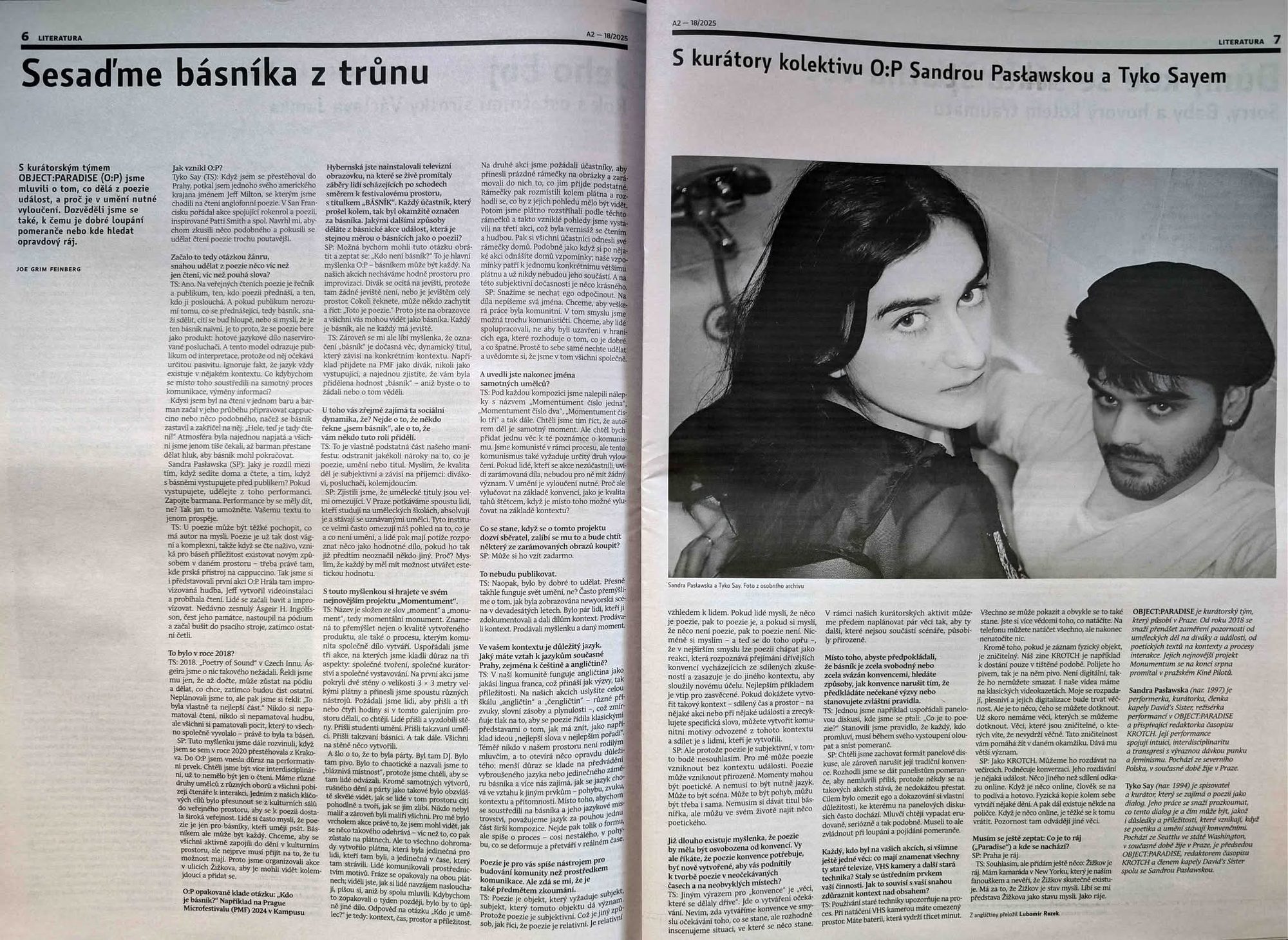 Unfortunately, 2025 began with the sad news of the passing of Ásgeir H. Ingólfsson, a long-time friend, O:P contributor, and staple in the Prague community. We had the pleasure of hosting Ásgeir at our very first language happening, Poetry of Sound (2018, Czech Inn), and later at our first international language happening, Performance Deformance Reformance (2024, Poland).
